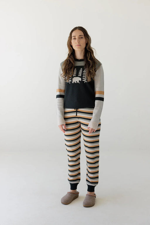 KAVUSemi-fitted, birdseye jacquard fully fashioned crew neck sweater, ribbed collar, cuffs, and hem, hip length. Yarn: 44% polyester 30% acrylic 20% ny...