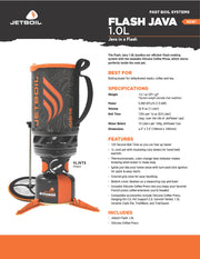 Blistering boil times come standard on the Flash Java Kit personal cooking system, which includes accessories for making a fresh cup of coffee on the trail. Optimized for efficiency, the Flash boils water lightning-quick, making it the fastest Jetboil ever. Jetboil's 1-liter FluxRing cooking cup with insulating cozy makes boiling water—and keeping it warm—a breeze. The kit's ultra-stowable Silicone Coffee Press stores perfectly inside the cooking vessel, so you can make French press coffee without hauling extra gear. Start heating instantly with the convenient, reliable, push-button igniter, and verify that the water's ready with the thermochromatic color-change heat indicator. Bottom cup doubles as a measuring cup and a bowl and is easy to pack and carry at only 13.1 ounces.