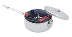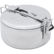 Stainless steel pot stands up to heavy use and offers a high quality, durable option in cookware. They’re perfect for scouts and emerging campers, as well as budget-minded travelers.