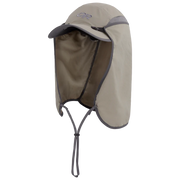 The 2.75" wide brim protects from the sun, while the external breathable mesh panels and internal UPF 40 fabric deliver a cool and comfortable feel while protecting from the sun. The convertible design features a removable cape to protect the back of the neck, while the dark material under the brim reduces glare. The chin cord keeps the cap in place on windy days spent on trail, and the TransAction™ headband wicks moisture away from head and face.