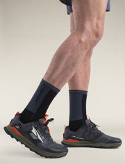 Thin, ultralight running socks made with a technical merino wool blend and crew height, the Merino Run+ Ultralight Crew is perfect for runs of any length. A reflective stripe on the back helps keep you visible in low-light conditions.