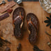 Crafted from distressed full-grain leather and lined with soft microfiber for an ultra-comfy, premium fit. Featuring a compression-molded EVA midsole with a full-grain leather footbed cover and leather binding edge, offering all-day comfort and style. This sandal showcases double-row saddle-inspired micro stitching on the footbed, a handsewn leather toe post, and a cast metal hook logo for distinctive craftsmanship