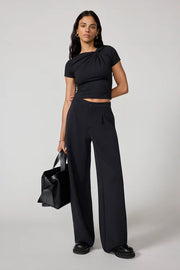 Elevate your everyday with a tee that's as dynamic as you are. This fitted silhouette features an asymmetrical neckline and playful knot-front detail that transforms a simple tee into a statement piece. Built with four-way stretch and moisture-wicking fabric, it moves with you through workouts, errands, and everything in between. Crafted from sustainable materials using responsible production methods, you'll feel good about what you're wearing—inside and out.