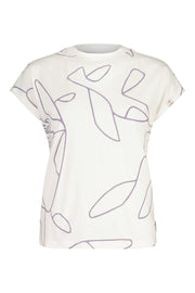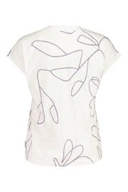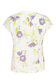 Modern cut tee with a wide shoulder and ribbed collar made from organic cotton. The three motifs of the all-over prints are based on floral designs from our LA VIA collection theme.
